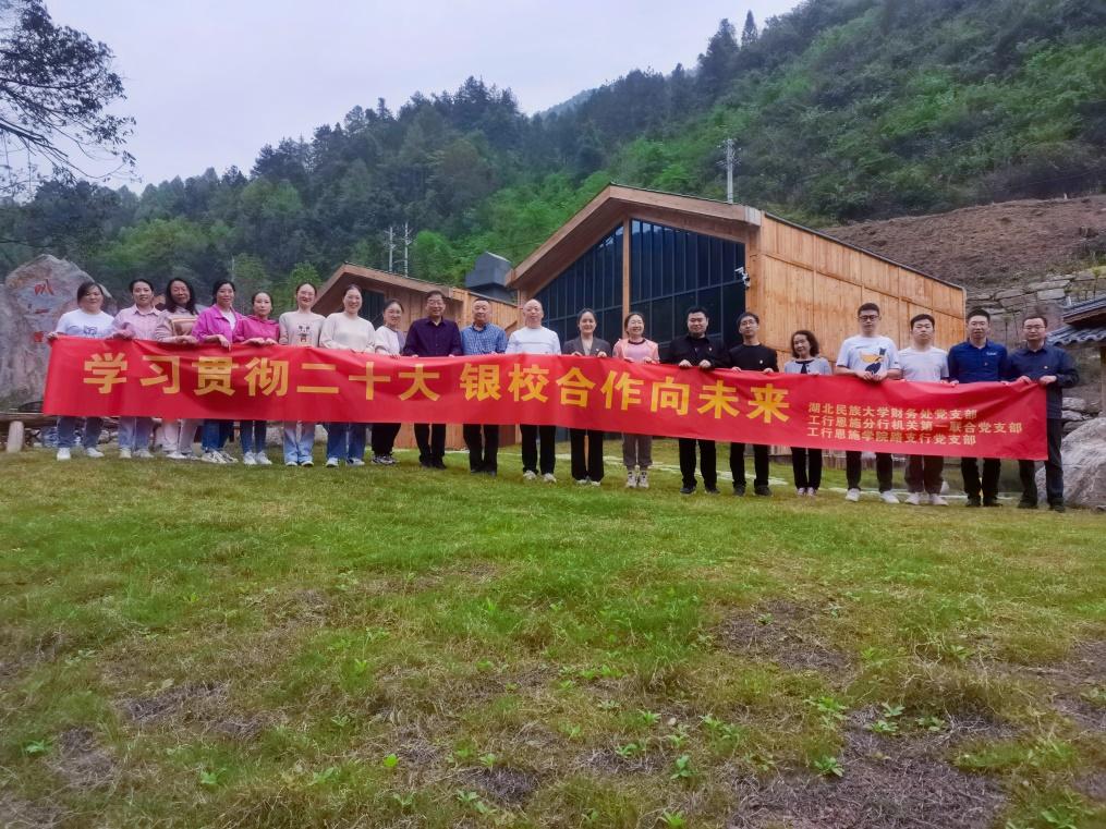 为深入贯彻落实党的二十大精神,进一步深化银校合作,以高质量党建引领高质量发展,4月13日下午,工行恩施分行机关第一联合党支部、工行恩施分行学院路支行党支部和财务处党支部在彭家寨开展“学习贯彻二十大,银校合作向未来”主题党日活动。